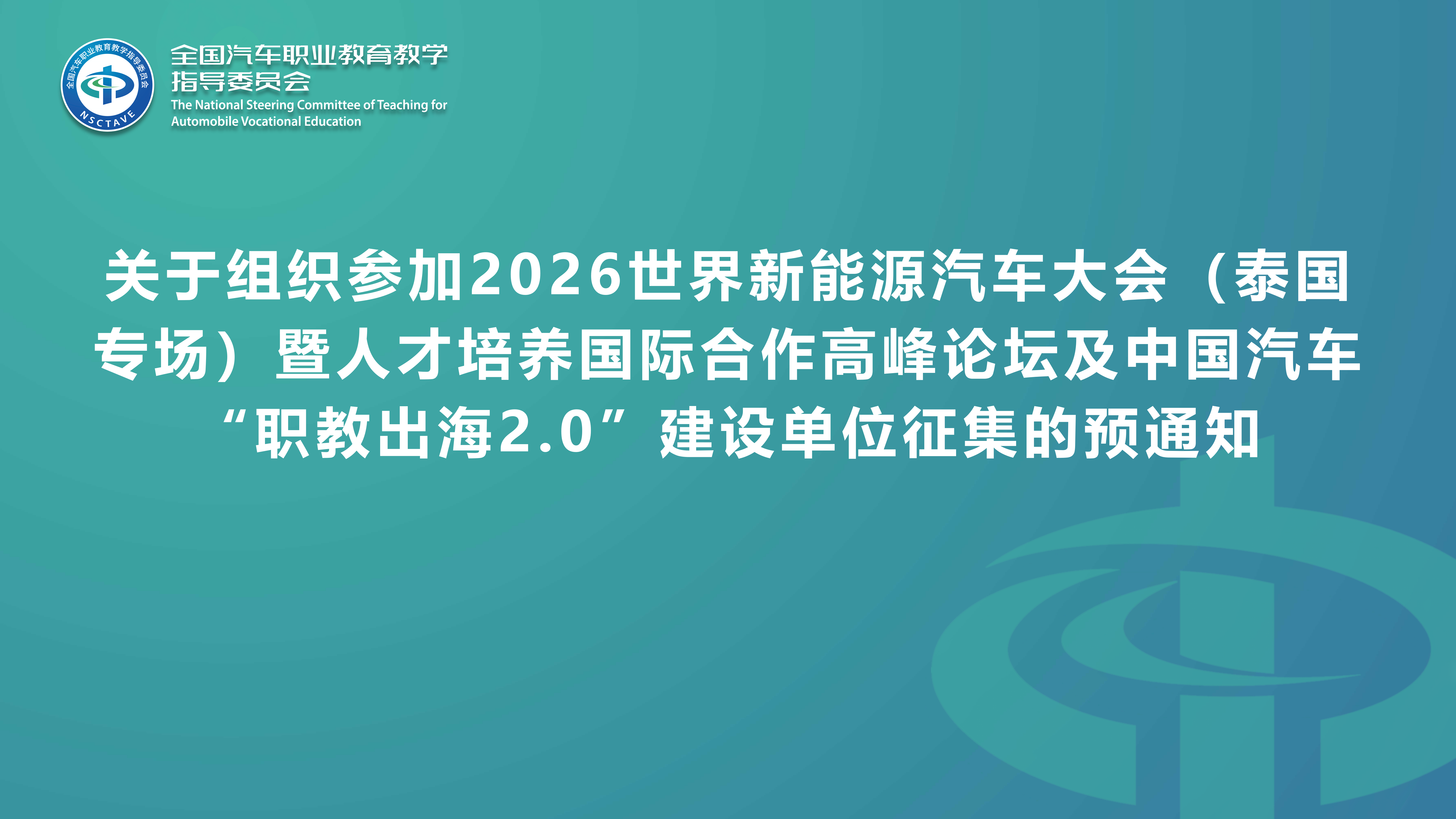 关于组织参加2026世界新能源汽车大会(泰国专场)暨人才培养国际合作高峰论坛及中国汽车“职教出海2.0”建设单位征集的预通知