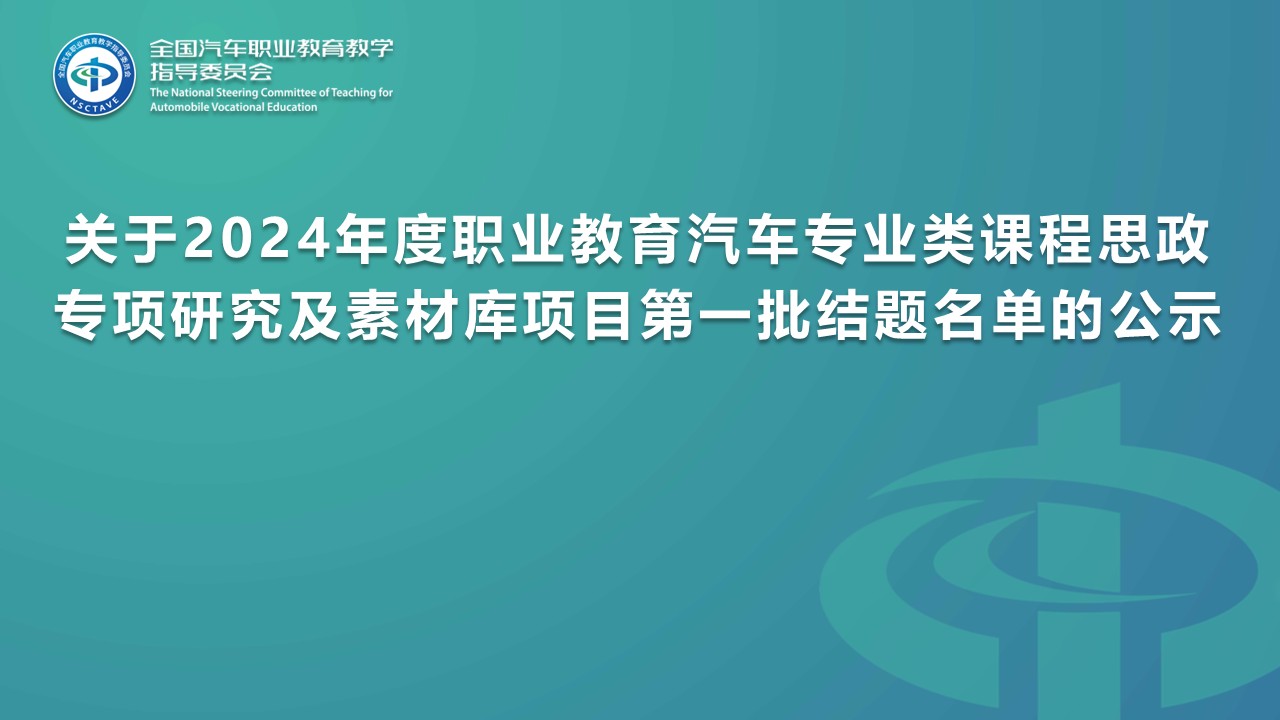 关于2024年度职业教育汽车专业类课程思政专项研究及素材库项目第一批结题名单的公示